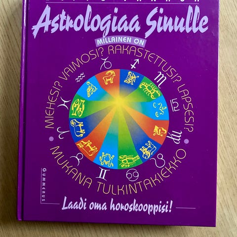 Seppo Tanhuan "Astrologiaa sinulle" -kirja suomen kielellä. Teos käsittelee astrologian perusteita ja soveltamista arkeen. Sisällössä käydään läpi muun muassa horoskooppimerkit, planeettojen merkitykset ja astrologiset tulkinnat eri elämänalueilla. Kovakantinen kirja, violetti kansi.