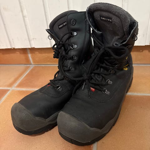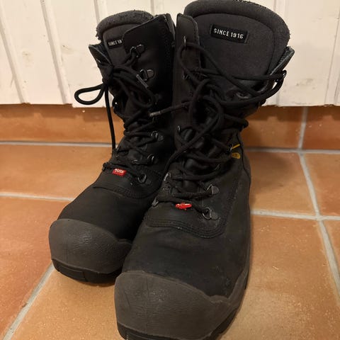 Jalas 9988 talvikengät, koko 43. Mustat nilkkapituiset kengät, joissa punainen sisävuori. Kengissä on vahvistettu kärki ja kestävä, kuvioitu ulkopohja. Kiristys tapahtuu pyöröllä (Boa-tyyppinen säätö). Soveltuvat kylmiin olosuhteisiin ja ulkokäyttöön.