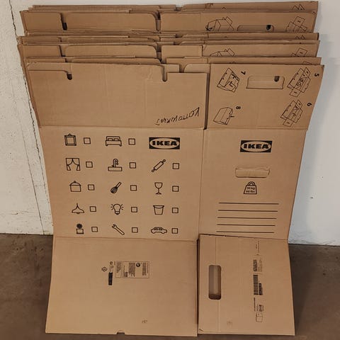 Yhteensä 29 kappaletta käytettyjä, mutta hyväkuntoisia muuttolaatikoita.
