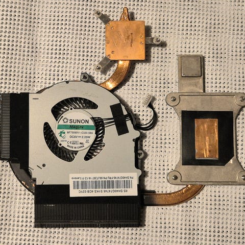Myydään Lenovo -kannettavan alkuperäinen jäähdytysyksikkö (tuuletin + kuparinen heatpipe + jäähdytysrivasto). Valmistaja Sunon