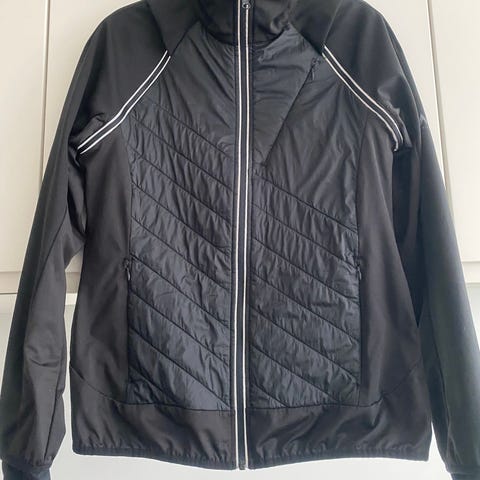 McKinleyn kevyt ulkoilutakki. Väri taittaa hieman vadelmanpunaiseen. Oikein hyvä kunto. Hupussa säätömahdollisuus, edessä vetoketjulliset taskut.