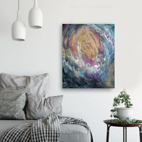 Taideteos on abstrakti ja sen värit ovat kauniit ja intensiiviset.