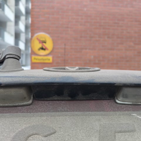 Haussa pelkääjänpuolen etulokasuoja. Ehjä. Toivottavasti joltain löytyy, viel samaa väriä. Ei ole silleen kiirettä.