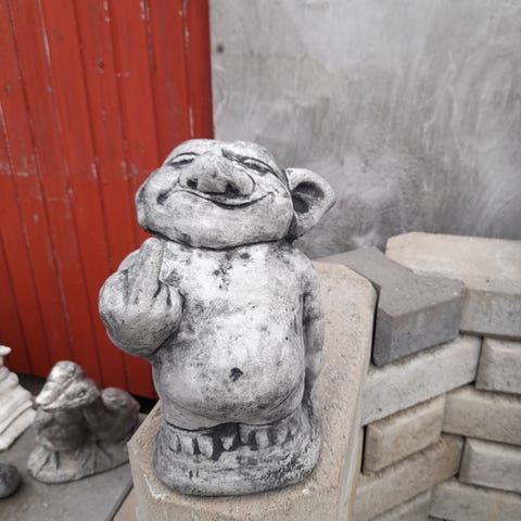 Kotimaisia betonista valmistettuja juoppo peikkoja 39,00/kpl.
