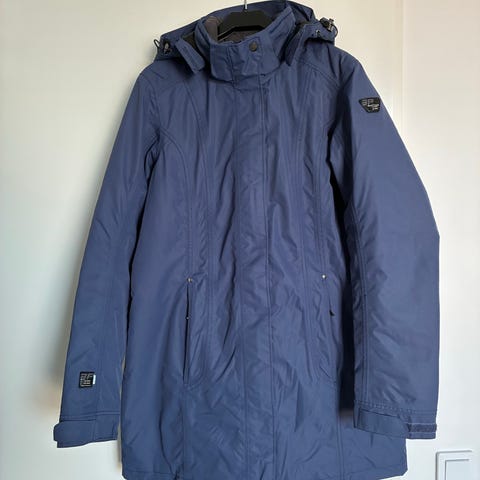 Icepeak naisten talvitakki, koko 44. Väri tummansininen. Takissa on kiinteä huppu kiristysnyöreillä, etuvetoketju ja painonapit sekä vetoketjulliset etutaskut. Vuorillinen malli, joka soveltuu talvikäyttöön arkeen ja ulkoiluun.
