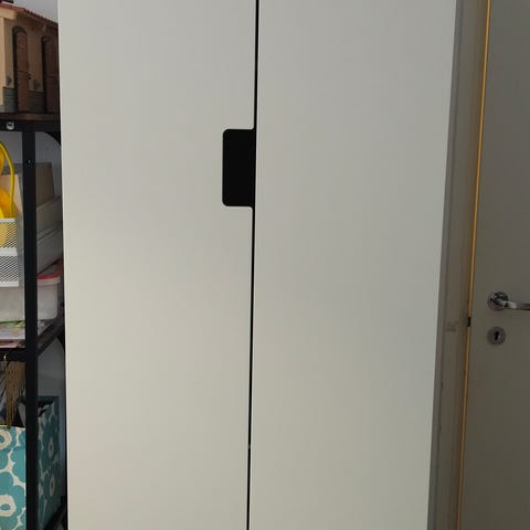 Erittäin paljon tavaraa nielevä kaappi esim. lastenhuoneeseen. :) Olikin meille liian iso. Keskimmäinen ovi irrotettu hyllytilaksi. Toisen oven takana hyllyjä, toisen vaaterekki ja 2 hyllyä. On painava ja purettava osiin. Pieniä käytön jälkiä mutta yleisilme siisti. Autetaan purkamisessa ja kantamisessa.