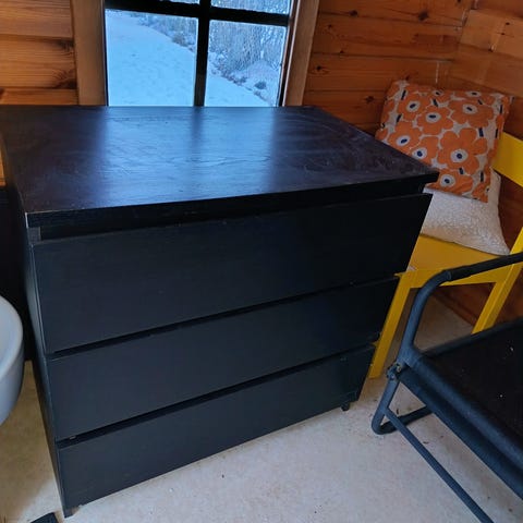 Malm -lipasto, ei kestä mitään painavaa. Ollaan pidetty siinä ulkovaruistei kuten pipoja yms. Kaksi alinta kaappia ei mene kokonaan kiinni. Haku kupittaalta.