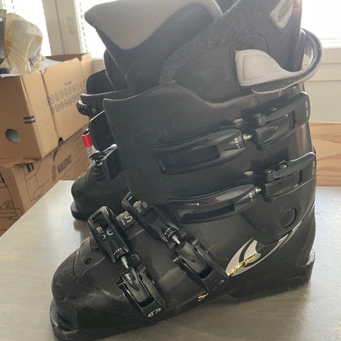 Salomon laskettelumonot. Kovamuovinen kuori ja useat säädettävät soljet jalkaterän ja varren tukemiseen. Monojen väri on sininen, sisäkenkä musta-keltainen. Sopivat rinnelaskuun ja yleiseen laskettelukäyttöön. Muutama vuosi on jo ikää, lämpimässä varastossa eivät ole paljoa tosin kuluneet. Kunto hyvä.