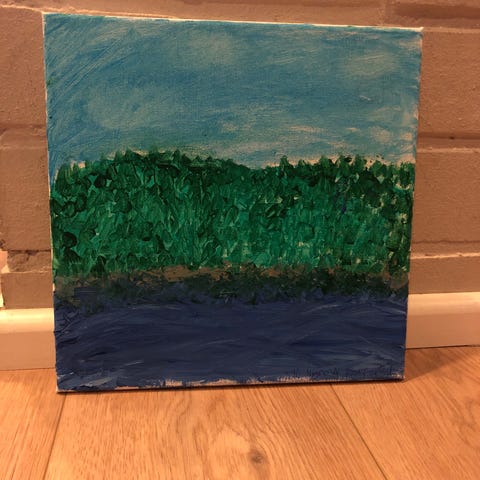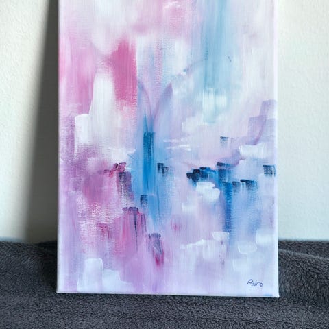 35cm * 27cm pahville pingotettu kangas. Akryyliväreillä maalattu.