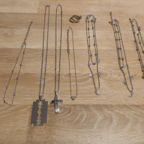 Käyttämätön setti, kaapissa seisonut. Pitkät helmet ja ranneke. Hinta sisältää toimituksen lähetystunnuksella