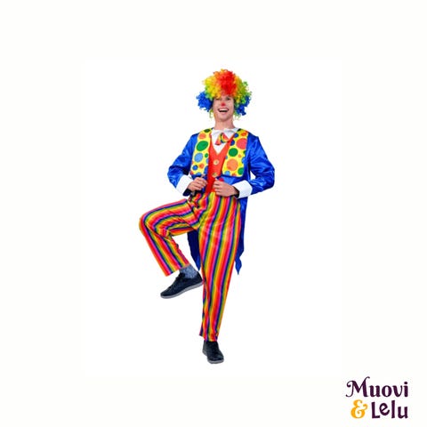 Klovniasu asusteet unisex kengät ja solmio keltainen monivärinen. Settiin kuuluu suuret pehmustetut klovnikengät ja pitkä solmio. Molemmat ovat keltaista kangasta, jossa on monivärisiä palloja sekä punaisia osia. Kengissä on nauhakiinnitys ja mustat pohjat. Solmiossa on joustava kaulanauha, joka helpottaa pukemista. Sopii unisex-käyttöön esimerkiksi naamiais- tai esityskäyttöön.
