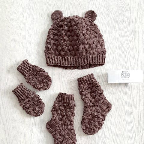 Vauvan pipo ja lapaset. Kudottu DROPS BABY MERINO langasta. 100% villa lanka. Koko 1-3 kuukautta.