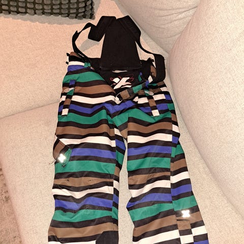 Mustat Reima lasketteluhousut / toppahousut. Kunto hyvä / ok. Hieman kulumaa polvissa, 1,5 cm viilto tullut ehkä kivestä polveen- se siisti ja näkymätön toistaiseksi. Tämä kohta korjattavissa ostajan toimesta helposti, itse en sitä jaksa enää korjailla.