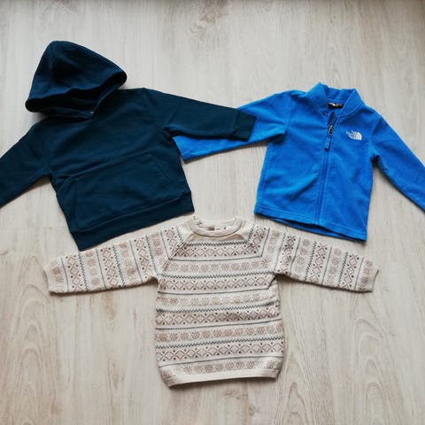 Myydään The North Face sininen fleecetakki, 2T (vastaa n.86cm), siisti käytetty kunto (haaleaa tummentumaa hiha-aukoissa).