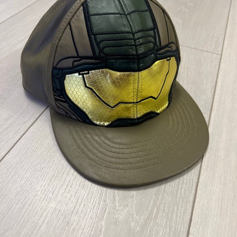 Master Chiefin kypärä Halo Infinite -pelistä. Ostettu Amazonista pari vuotta sitten, sisälle laitettu pehmustusta vanhasta moottoripyöräkypärästä, että ei hölsky päässä niin pahasti eli mahtuu isoonkin päähän. Näyttää hyvältä hyllyssä ja päässä, koko noin 35x25x25cm.