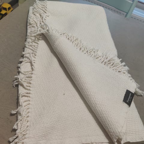 Myydään Finlayson Kashmir torkkupeite, jossa luonnonvalkoisella pohjalla beige kuviointi ja päissä hapsut. Materiaali villasekoitetta (65 % villaa, 25 % puuvillaa ja 10 % polyamidia).