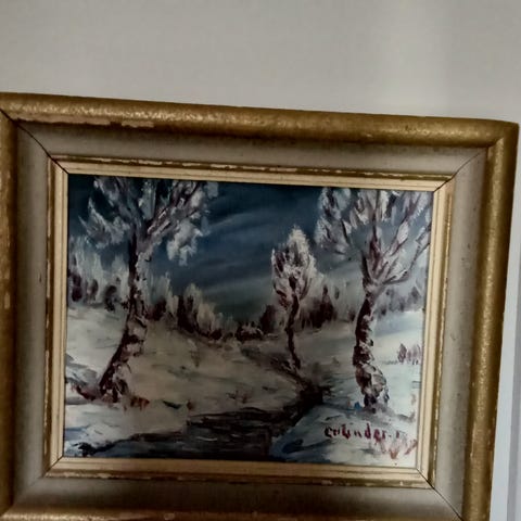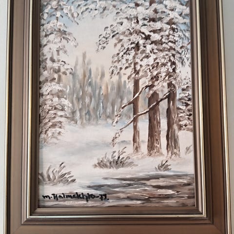 Myynnissä kuvan taulu, jonka A Nyberg on maalannut v. 1985. Tässäpä hieno talvinen maisema sellaista tarvitsevalle!