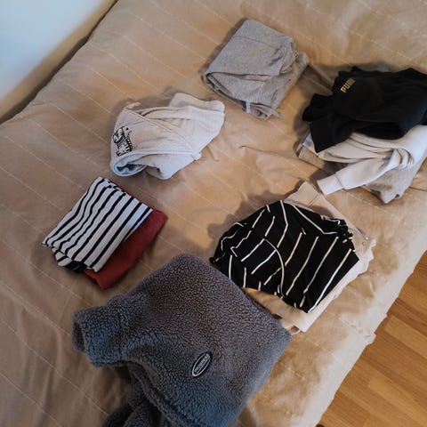 Vaatteet ovat säkissä mistä saa tulla penkomaan