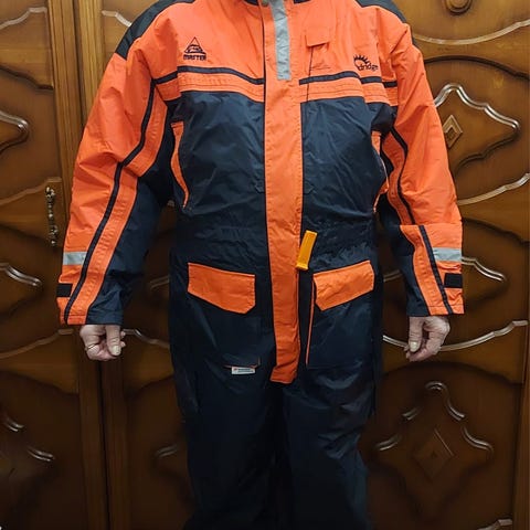 XL kokoinen kelluntapuku, takki ja housut, käytetty mutta ehjä. Myynnissä myös muualla.