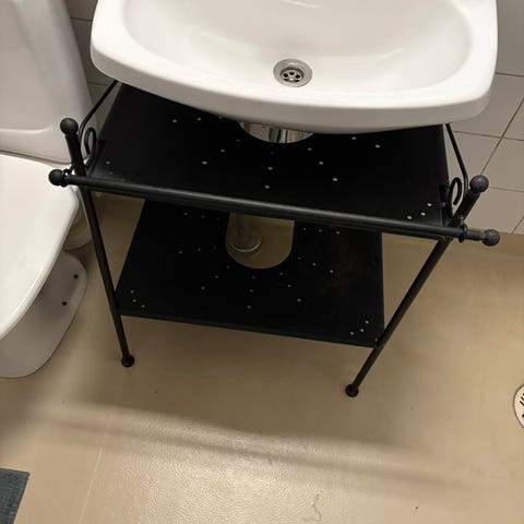 Metallinen musta hyllykkö. Käytettynä aikaisemmin ostettu omaan talouteen.