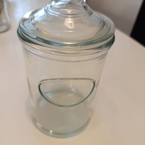 Riihimäen lasin Kotilasi säilytyspurkki lasisella kannella.