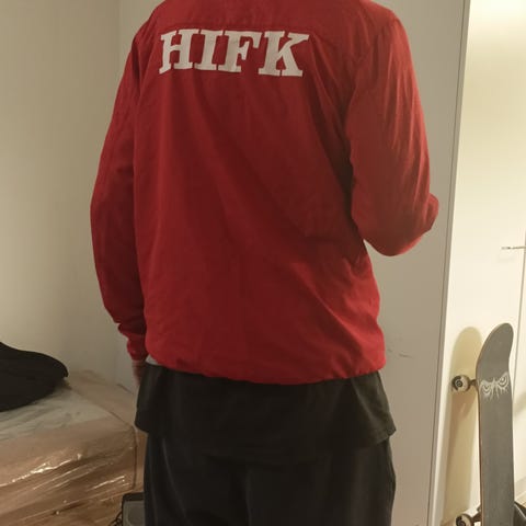 HIFK logolla fleecetakki, vetoketjusuljenta edessä, myös taskuissa.