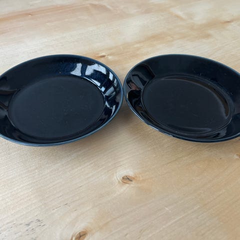 Iittala i-sarjan lautaset lilasta lasista 6 kpl Halkaisija 14 cm. Ehjät. Suunnittelija Timo Sarpaneva, valmistettu 1958-1970.