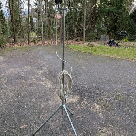 Säädettävällä kolmijalalla varustettu työvalaisin. Valaisin on kiinnitetty metalliseen jalustaan, jonka korkeus on säädettävissä. Rungon väri on keltainen. Sopii esimerkiksi autotalliin, varastoon tai työpajalle lisävaloksi erilaisiin remontti- ja rakennustöihin.