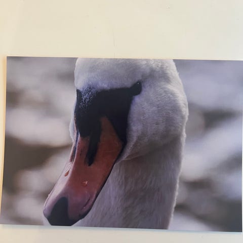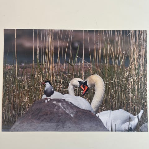 Originaali joutsen valokuvataide posteri A4 kiiltävällä ja paksulla valokuvapaperilla. Kuvassa on veikeä tunnelma