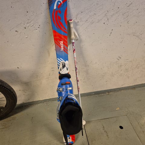 Laskettelusukset Firefly 120cm, Salomon laskettelumonot, kypärä ja lasit