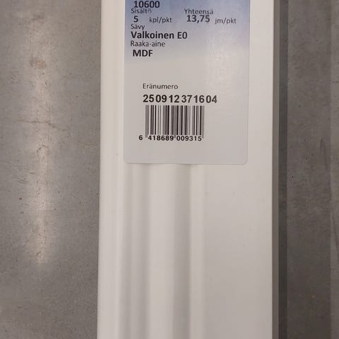 Jalkalista 12x42x2750 10 kpl valkoinen. Yhteensä 27.5 metriä mdf