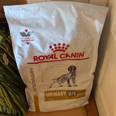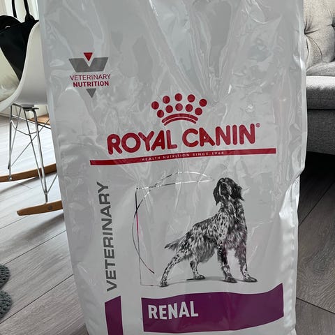 Kaupan päälle avattu säkki, jossa nappuloita jäljellä n. 1 kg + 2 purkkia Royal Canin hepatic märkäruokaa.