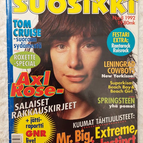 90-luvun Suosikki numero 8 vuodelta 1991. Julisteet puuttuu. Kansi ja kulmat on kuluneita.