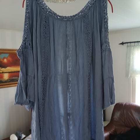 Siisti ja hyväkuntoinen vähän käytetty Hieman joustava materiaali.almia pusero /paita / jakku. Kainalo-kainalomitta n. 48cm. Olka-helmamitta n. 76cm.