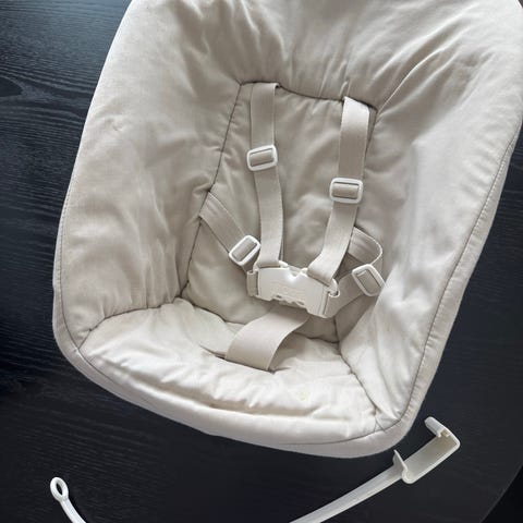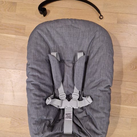 Stokken Tripp Trapp syöttötuoliin vastasyntyneen istuin. Istuimen saa säädettyä kahteen eri asentoon. Erittäin hyvässä kunnossa.