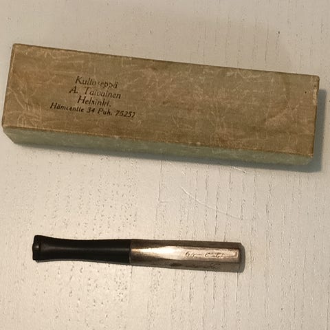 Hopeinen tupakkateline kannella