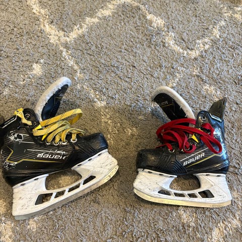 Erinomaisessa kunnossa olevat Bauerin hokkarit, koko 32. Ei kulumaa. Muutaman kerran käytetty ja teroitettu ennen käyttöä.