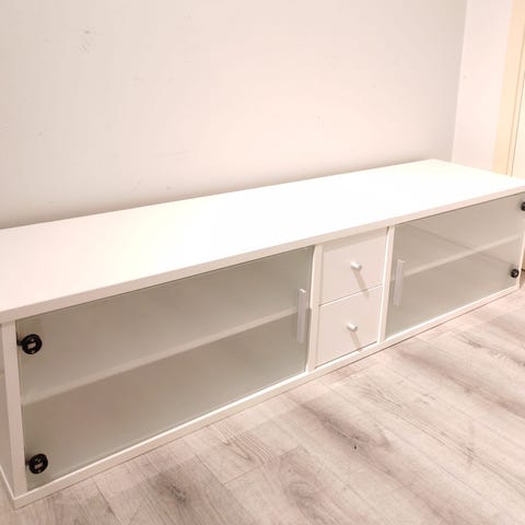 Myydään todella siisti, täysin ehjä tv-taso. Väri kiiltävä valkoinen. Sivuilla kaksi reilunkokoista, hyvin liikkuvaa laatikkoa.