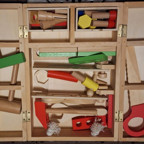 Puinen työkalupakki työkaluilla