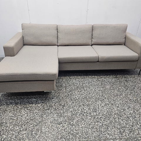 Laadukas orinoco-kangas ja kiinteä verhoilu. Todella mukava sohva.