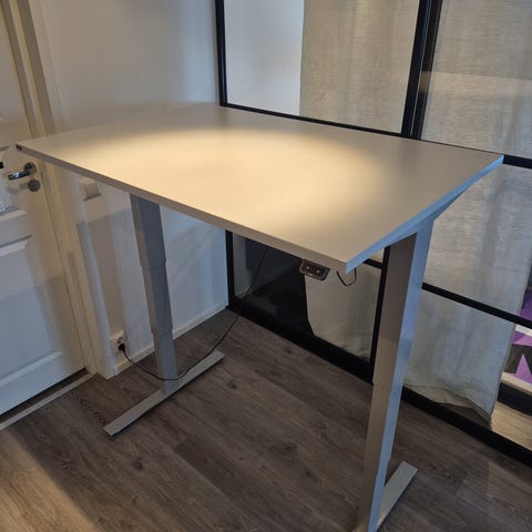 IKEA korkeussäädettävä työpiste sermillä ja hyvällä työtuolilla