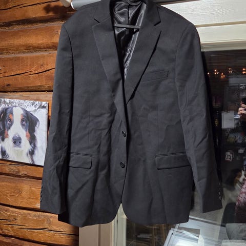 Dressmannin Extra Slim Fit musta puvun takki, koko 52R. Ollut 2 kertaa päällä noin 180cm M/L kokoa käyttävällä normaalikokoisella.