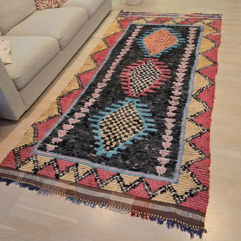 Käsin tehty kaunis ja värikäs boucherouite/räsymatto.