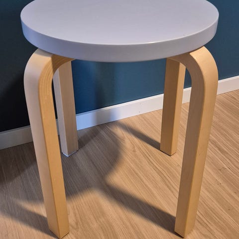 Myynnissä erinomaisessa kunnossa oleva Artekin jakkara. Puuosat koivua ja päällinen valkoinen laminaatti.