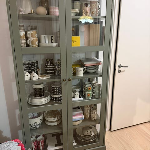 Myydään uutena Kruunukalusteesta ostettu tamminen vitriinikaappi. Purettu paketista paikalleen, joten kunto on kuin uudessa.