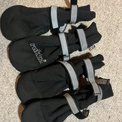 Myydään koiran tassujen suojaksi Rukka suojat. Muistaakseni koko xs.