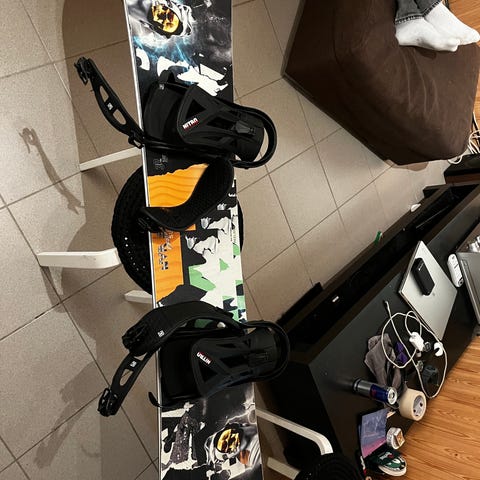 Hyväkuntoinen lumilauta, kengät ja kypärä. Hinta setille 135€, erikseen lauta 100€, kengät 25€ , kypärä 15€