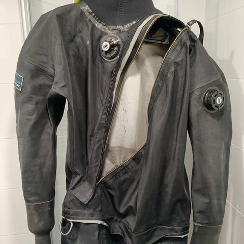 Ursuit 4Tek kuivapuku. Musta, yksiosainen malli, koko M. Puvussa on vahvikkeet polvien alueella sekä useita heijastimia näkyvyyden parantamiseksi. Hihassa tasku, jossa Ursuit- ja 4Tek-merkinnät. Soveltuu kuivapuvuksi esimerkiksi vesillä liikkumiseen tai muuhun märkäolosuhteissa tapahtuvaan käyttöön, jossa tarvitaan vedenpitävyyttä ja suojaa.