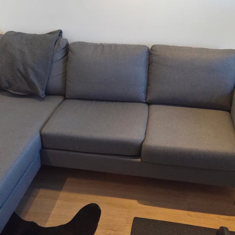 Askon kulmasohva myyntiin muuton vuoksi. 230 x 380 cm. Koiratalous, mutta tekstiilipesurilla pestään tämä härpäke täysin, kunhan aika antaa periksi. Nouto aikaisintaan