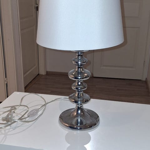 Metallinen pöytävalaisin, jossa kolmijalkainen jalusta ja pyöreä varjostin. Valaisimessa on kangaspäällysteinen johto ja pistotulppa. Sopii esimerkiksi työpöydälle, yöpöydälle tai lisävaloksi olohuoneeseen. Pyöreä osa kiinni magneetilla.